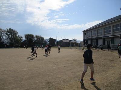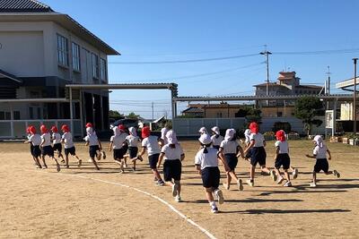 朝は冷え込みましたが、昼間は汗ばむくらいの陽気となりました。今日は、久しぶりの欠席ゼロ、78人の元気な子供たちが、持久走大会本番と同じ時刻、同じコースの走りにチャレンジしました。