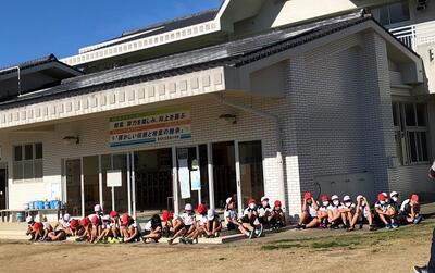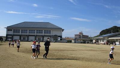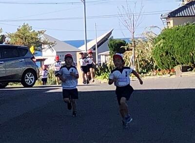 まずは10時スタートの1・2年生。初めて走る1年生はやや緊張気味。10時15分スタートの3・4年生も児童玄関前で低学年の走りを応援してくれました。