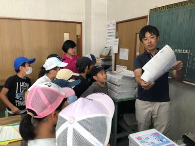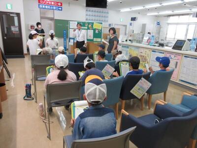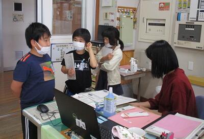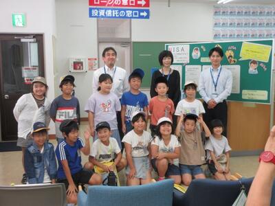 この日の最後は「肥後銀行富岡支店」。お昼休みの時間を使って子供たちに丁寧にお話しくださいました。銀行の方からお金を数えるプロの技も見せていただき、たくさんの驚きがあった探検タイムでした。