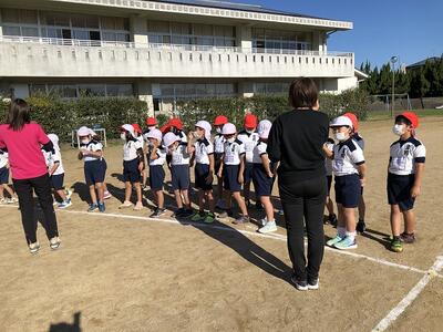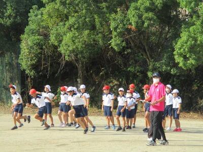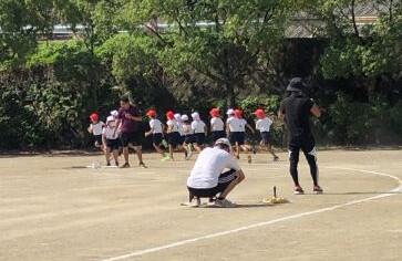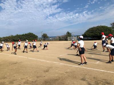 低学年が終わると、次は中学年、3・4年生の出番です。中学年も低学年に負けず、気合い入れをして、10時15分にスタートしました。