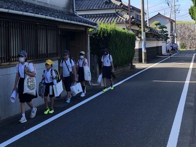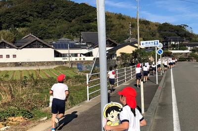 最後は、高学年5・6年生のスタートです。高学年になると3キロと距離も伸び、アップダウンのある道のりです。各学年の走りに合わせて、PTA体育委員長さんがバイクで先導役を務めてくださいました。また、子供たちが走りやすいようにとコースの草刈りまでしてくださった方もいらっしゃいました。持久走大会を支えてくださるいろいろな方に感謝の気持ちをもちながら、みんな自分に負けず、ゴールまで全員走り抜くことができました。