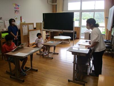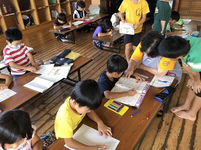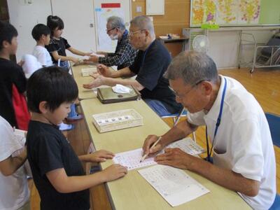 ひとつひとつ丁寧に丸をつけてくださり、「がんばったね!」「すごいね、100点満点」などの声かけに、1・2年生もニコニコ笑顔になっていました。