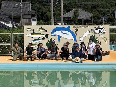 午前7時50分、富小6年生14名全員鬼池港に集合。