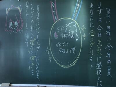 フェリーの出発時間の関係で、担任をもつ先生方の見送りはできませんでしたが、教務主任の先生が代表でメッセージをプレゼントしてくださいました。