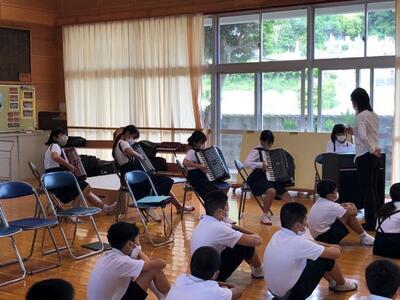 10月7日(土)に行われる熊本県小学校器楽合奏コンクールを直前に控えた器楽部の子供たちが、音楽集会で演奏を披露しました。