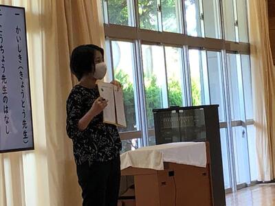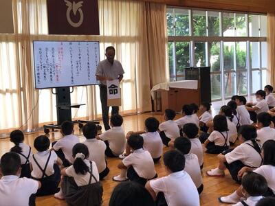 子供たちも、食い入るように松尾さんのお話を聞き、最後にお礼の言葉を述べた代表の子も、声を詰まらせながら自分の思いを一生懸命伝えていました。