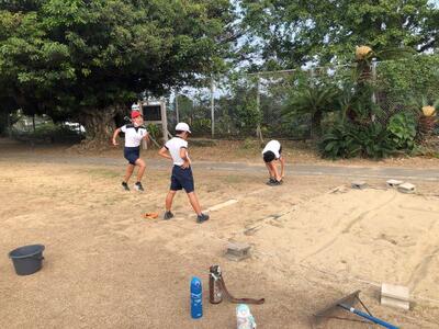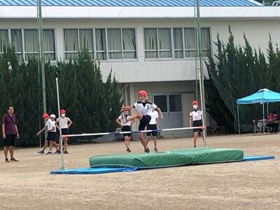 100m走が終わると、走り幅跳び、走り高跳び、ソフトボール投げの3種目は同時進行で行われます。担当の先生と練習してきた成果を最大限発揮しようとがんばっていた子供たちでした。(走り幅跳びは遠くからの写真で、様子が分かりづらくてすみません・・・)
