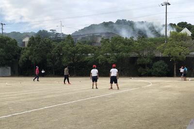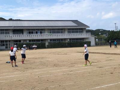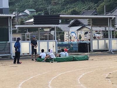 午前中、坂瀬川公民館グラウンドにて小体連苓北部会陸上記録会が開催されました。会場に着くと、どの学校もグラウンドでウォーミングアップを始めていました。
