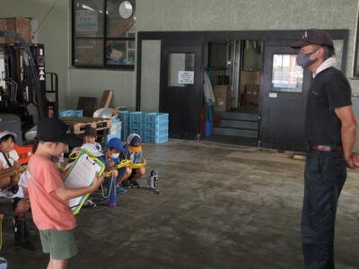 まず、10月2日(月)は熊日新聞販売所を訪問。新聞の中に入ってくるチラシを折る機械を実際に動かして見せていただいたり、お仕事の大変さややりがいについてお話しいただいたりしました。