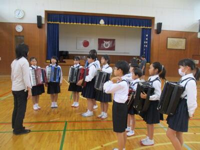 富岡小学校器楽部の演奏は、本当に心を揺さぶられる感動の音楽です。(私はいつ聞いても涙があふれてきます) 指揮者の先生と12名の子供たちの心が一つになり、体全体で音楽を表現します。聞いている子供たちも、音楽の世界に自然と引き込まれていきます。演奏が終わった後、器楽部の子供たちに対して、感想や激励の言葉をおくっていました。