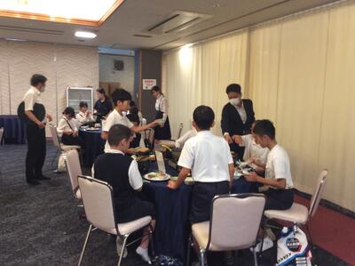 子どもたちは昨晩は、友達との会話を楽しみながらも、昼間の疲れからかすぐ寝た子が多かったようです。寝起きも素晴らしく、朝食の集合時間の10分前には全員集合。みんなとても元気です。