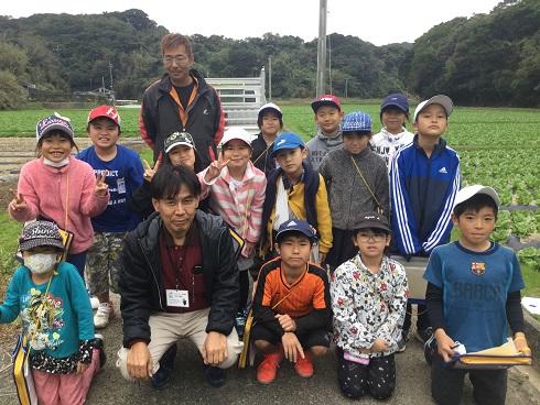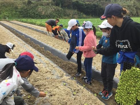 3年生がレタス畑の見学に行きました。子ども達は実際に苗の植え付けをさせ