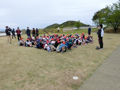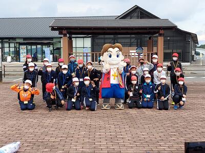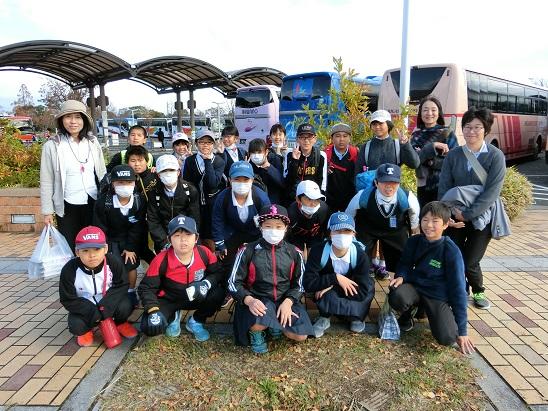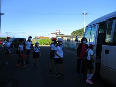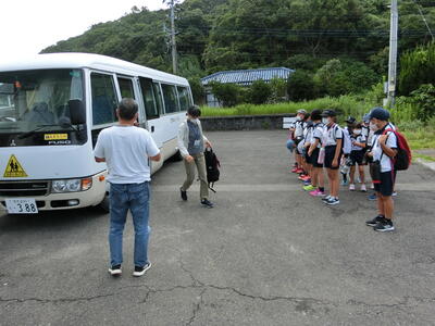 午前6時30分、体育館前には水俣に向かう5年生の姿が・・・