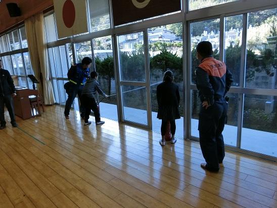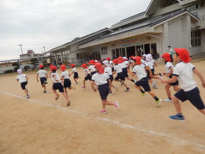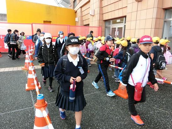 行い、子ども達は担任の先生の指示に従って運動場へ素早く避難しました。その後、ホールで