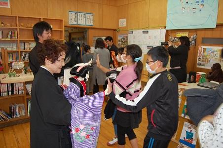 帰る時はお土産ももらい、大喜びの3年生でした。お忙しい中ご協力いただいた