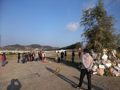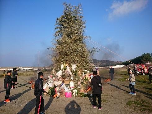 晴天の下、今年も子ども育成会のどんどやが行われました。6年生が点火す