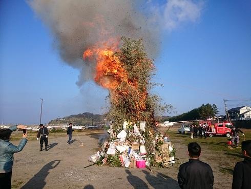 ると勢いよく燃え上がりました。子ども達は今年一年の健康を願いながらおも