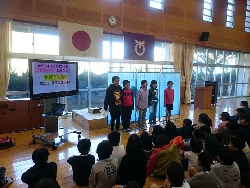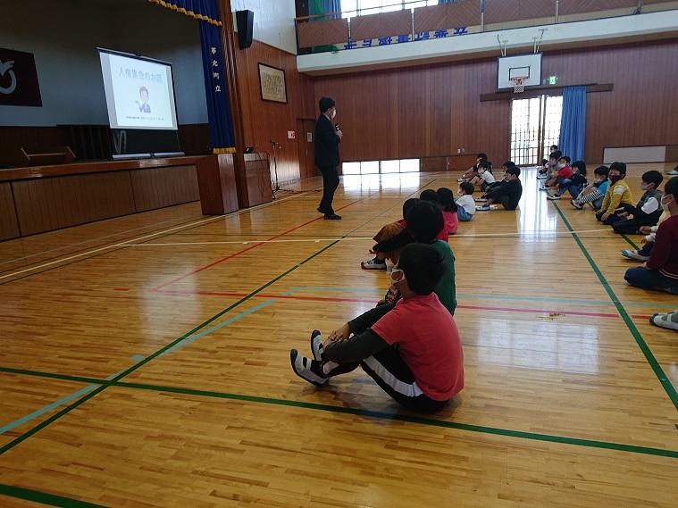 自分の可能性を最大限に発揮する年にしましょうと、児童に話をしまし