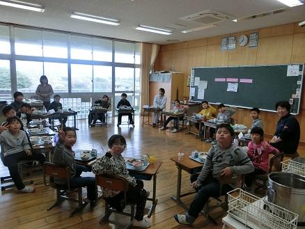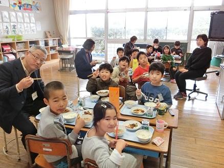 達は楽しくおしゃべりをしながら給食を食べていました。