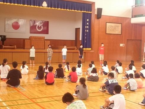 この日は低学年、お話は「くもの糸」でした。最後に、しっかりと感想も発表してくれました。