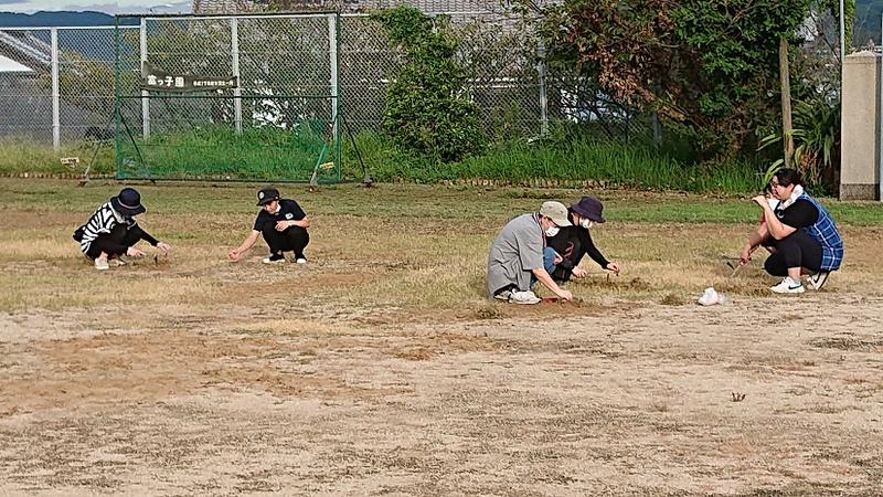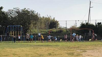 草刈り機で運動場周辺の草を刈っていただいたり、運動場にぽつぽつ生えた草を丁寧に取ってくださったりと、夕方4時から6時までの各自30分間の作業時間の中で(中には1時間ほど作業して下さった方も…)運動場をきれいにしてくださいました。