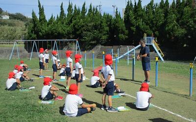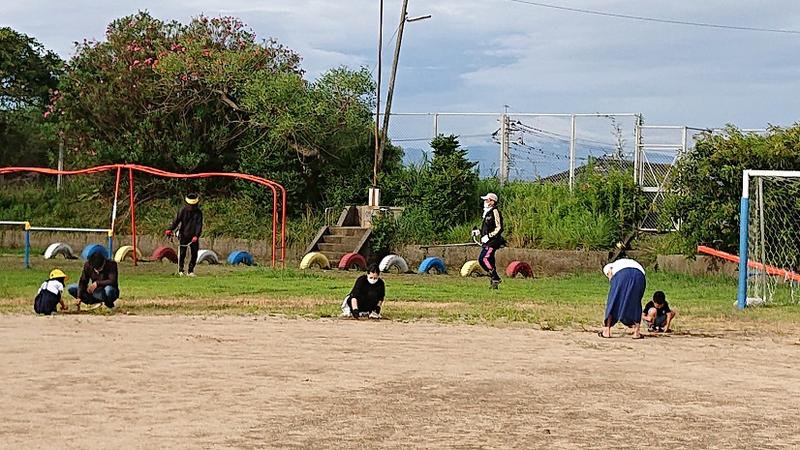 朝から、台風対策で片づけた鉢や道具等を元に戻すために高学年の子供たちに呼びかけたところ、低学年の子供から「先生、私たちも手伝っていいですか」とうれしい言葉が…