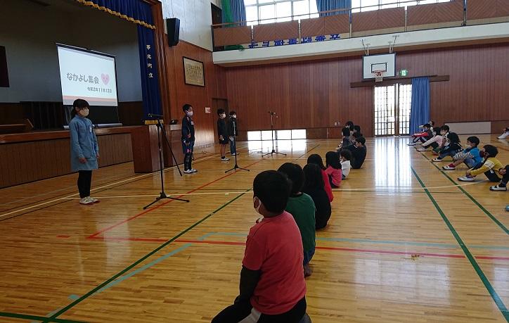 富岡小学校は、今週から人権旬間です。その取組の一つとして5校時に「なかよし集会」が行われました。