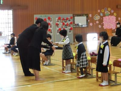 保護者の方や先生方も「あいうえお作文」で子供たちを見送ります。
