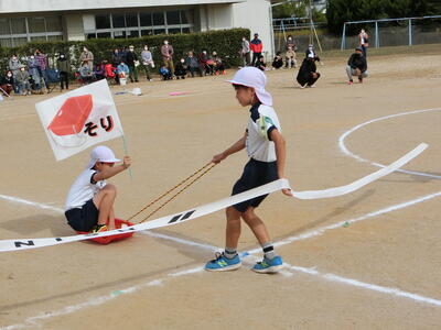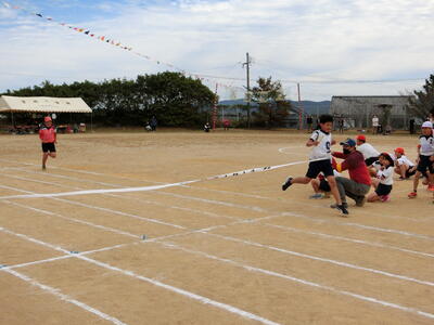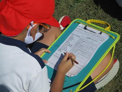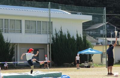 そして、競技スタート。今年は100m走と、走り幅跳び(5年)、走り高跳び(6年)と種目を減らしての実施でしたが、みんな自己ベストを出しながらの大健闘でした。