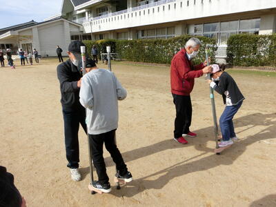 28日(水)の練習では、走り幅跳びと走り高跳びに分かれ、体育主任の先生から跳び方のコツを教えていただき、フォームも改善されてきました。