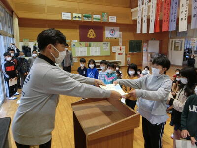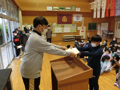 最後は、支援学校の友達に向けたお手紙や折り紙のプレゼントを先生に渡しました。