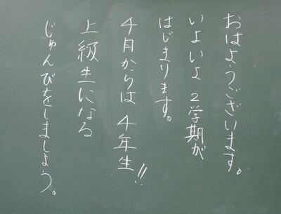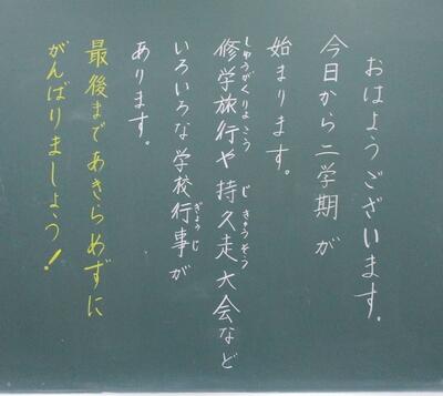 た。児童は輝く瞳で聞き、「努力向上」仕上げの3学期がスタートしま