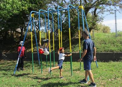 1年生も、ブランコを取り付ける先生のお手伝いを頑張っていました。