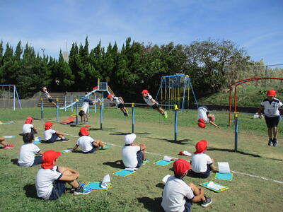 鉄棒は苦手意識をもっている子も多いようです。しかし、今は朝や昼休みに手にマメをつくりながら練習を頑張る姿が見られます。逆上がりやほかの技ができた時の喜びは格別のものがあります。(みなさんも、そういった経験ありませんか?)たくさんの子供たちが、「できた」喜びを味わえるといいですね。