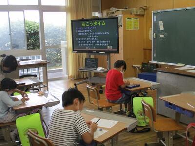 地域の方に「丸つけ先生」として1・2年生への学習支援を行っていただく「あこうタイム」が、今年も始まりました。(平成25年から始まり、今年で12回目だそうです)