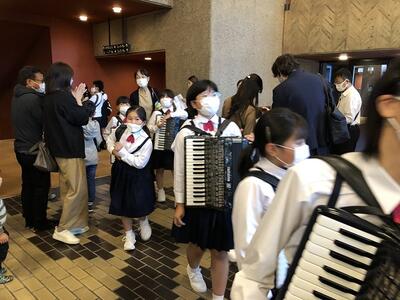 演奏を終えた子供たちは、ロビーで多くの保護者や応援に駆け付けた先生方に拍手で迎えられ、満足そうな表情でした。