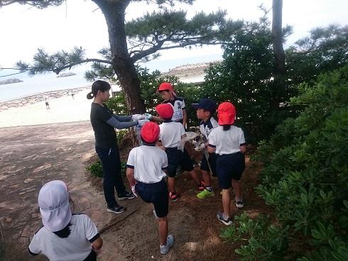 学年ごとに分かれて近くの海水浴場や、湊付近に行ってゴミを拾いました。