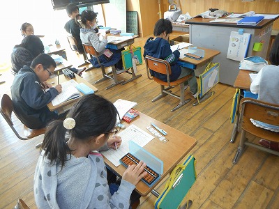 初めてのそろばん。面倒くさいと思いきや、とてもやる気満々の3年生。操作活動の良さが出ていました。楽しみながら計算をしていました。