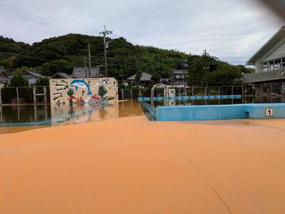 朝6時前に天草市の安全メール。大雨で西海岸の道路が遮断されるらしい。びっくり。急いで学校へ向かいました。プールも満水であふれていました。富岡地区に大きな被害がなくまず安心です。