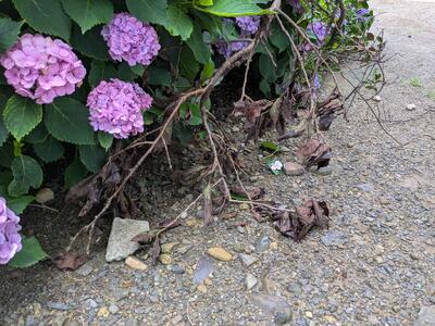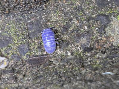 朝の登校時間は雨が止んでいて安心。子どもたちがムラサキ(今流行りのライラック色♪?)のダンゴムシがいると教えてくれました。