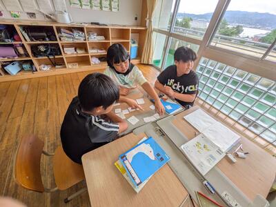 1年生は、「くじらぐも」の音読練習中です。自分の気に入った場面を工夫しながら音読します。