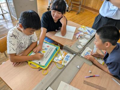 1,2年生に6名の赤ペン先生が今年も就任してくださいました。今日は5人の方々が参加してくださいました。
