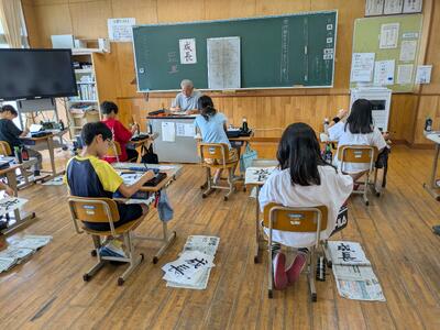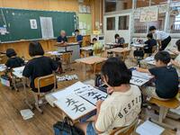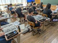場所は変わって5年生教室は毛筆指導。