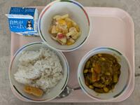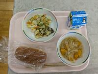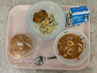 今日の給食はミネストローネ、丸パン、鶏のスパイシー焼きです。職員室では「スパイシー焼き」と「タンドリーチキン」はどう違うんだろう?という会話が....。それはさておき、今日もおいしくいただきました。