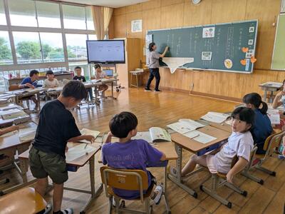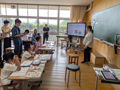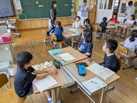 昨日は、鹿児島の大学から先生に来ていただき、6年生の社会の学習と5年生の国語の学習の様子を見ていただきました。教職を目指す学生さんも6名参観されました。