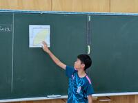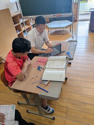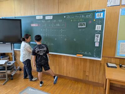 今日の算数の時間です。教頭先生と一緒に分数の概念を整理しています。