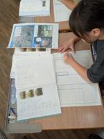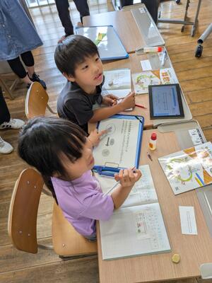午前中の算数の時間。分数のかけ算を頑張っていました。