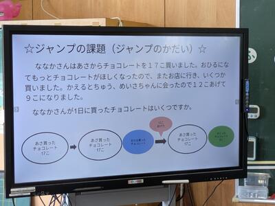 思考の連続を大切に、ペアでしっかり考えます。共有の課題で考えを深めたら「ジャンプの課題」に突入です。