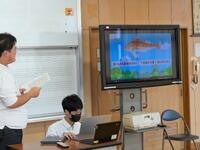 まずは、マダイとクルマエビの生態や養殖の現状などを説明して、いただきました。