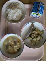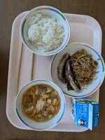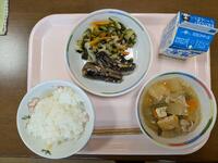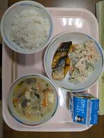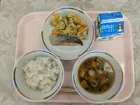 今日の給食はTHE和食。鯖の塩焼きにさつま汁。おいしくいただきました。